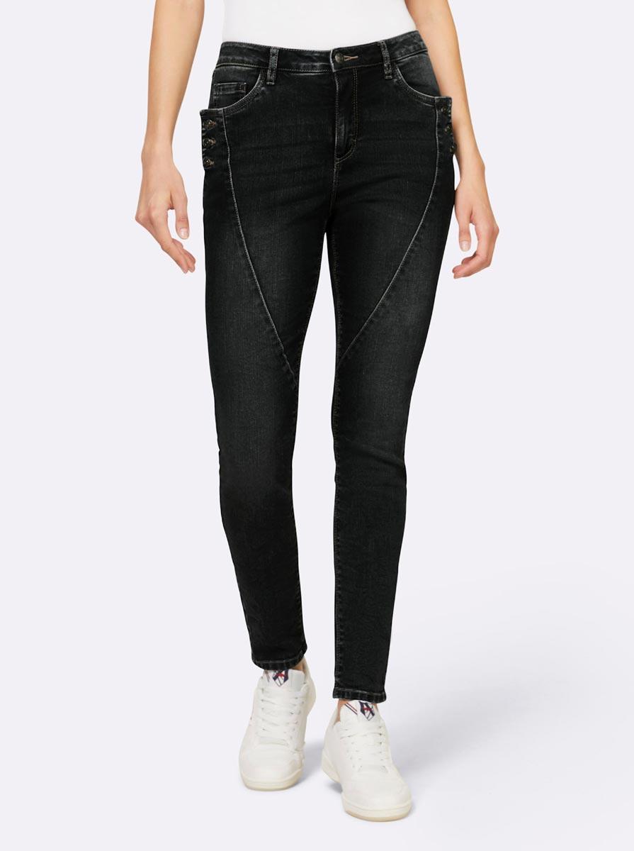 5-Pocket-Push-up-Jeans mit Strass black denim