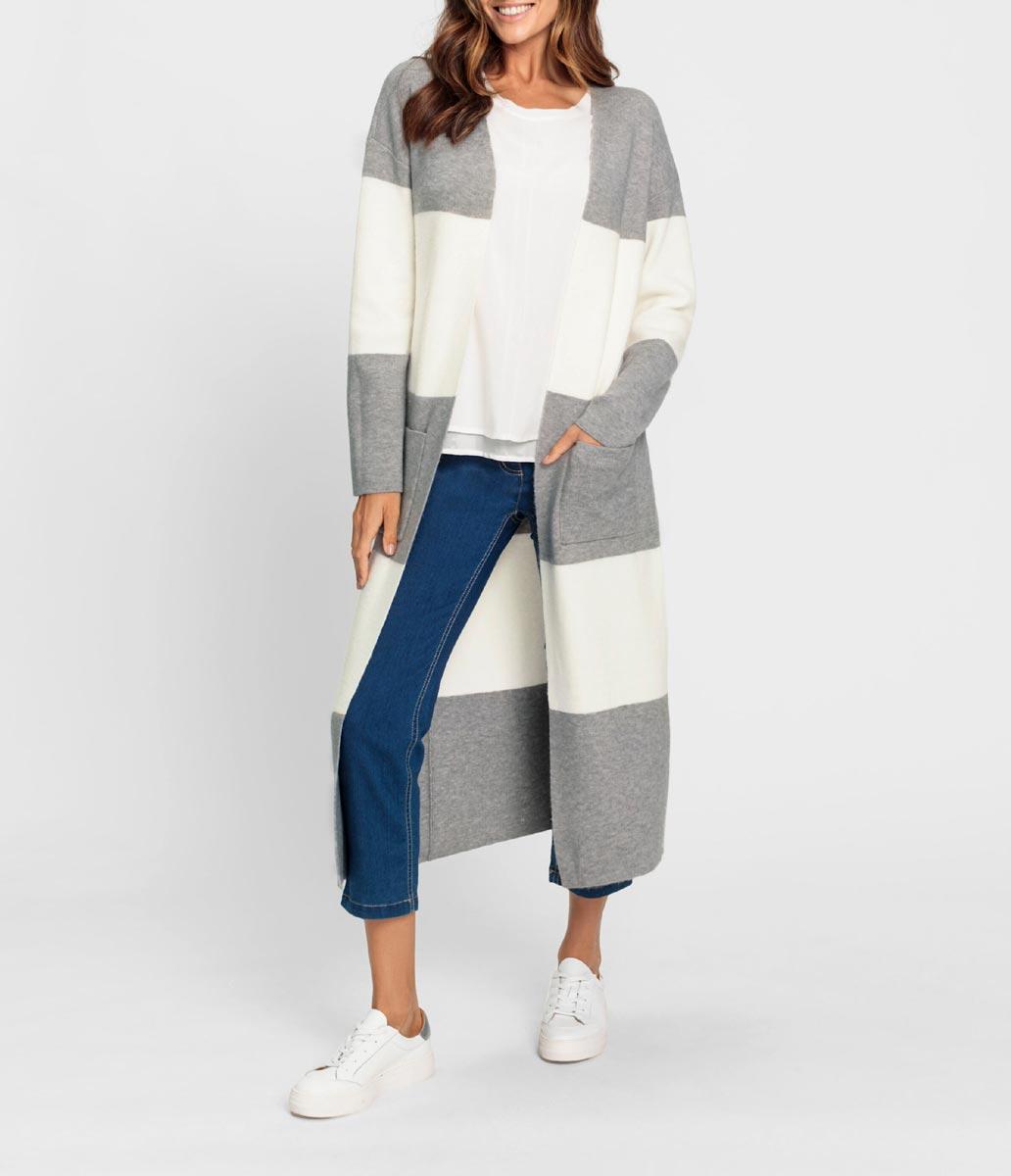 Diese Strickjacke in charmantem Design ist eine trendige Alternative zu Blazer & Co. Warmes Melangegarn mit Merino-Wolle und ...
