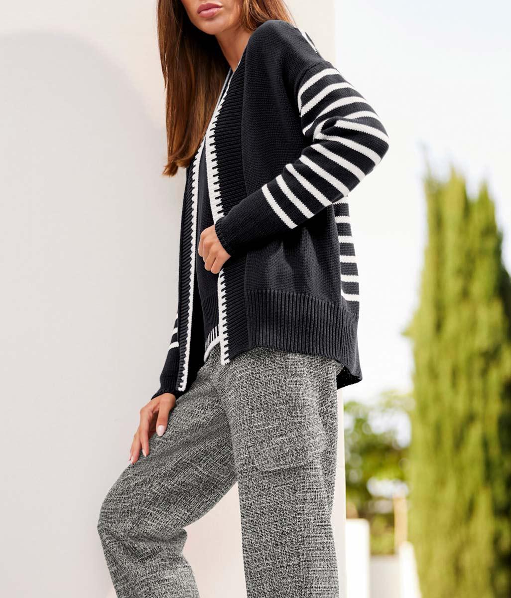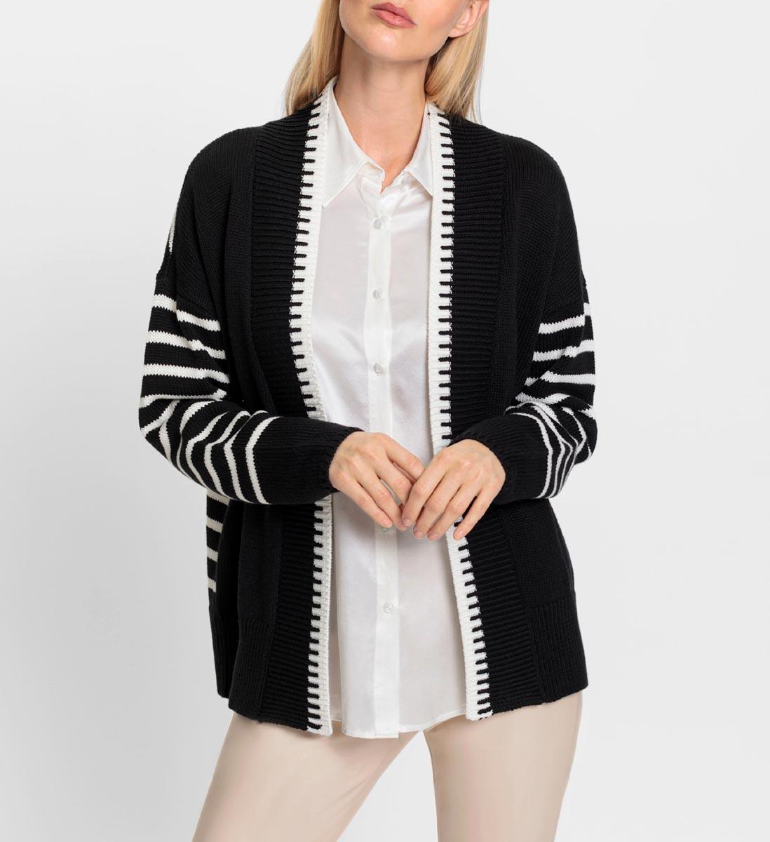 We love the look! Stilvoll und trendy zugleich. Bei dieser sheego Strickjacke fallen die sheego-Buchstaben im Jacquardstrick sofort ...