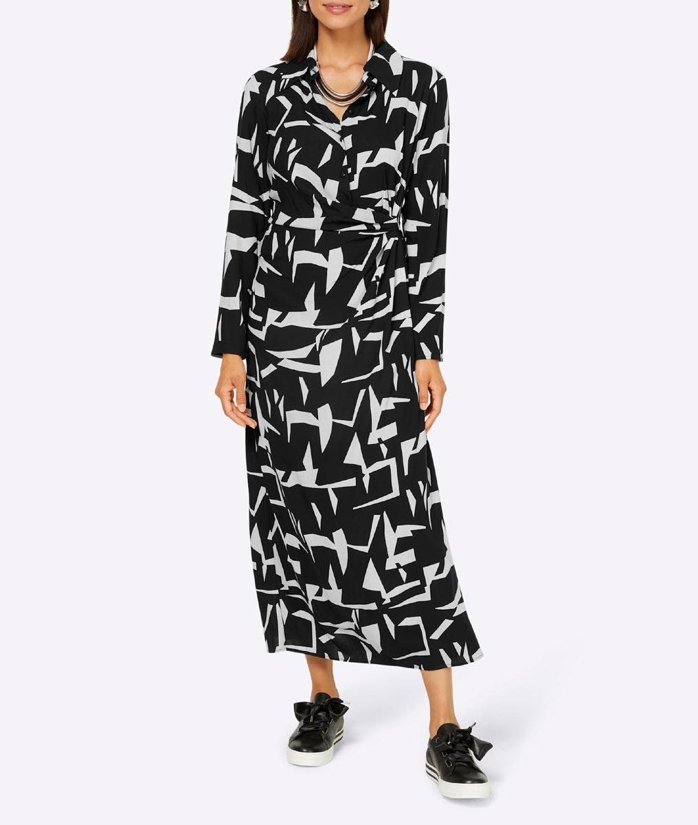 Marken-Midi-Druckkleid schwarz-bunt