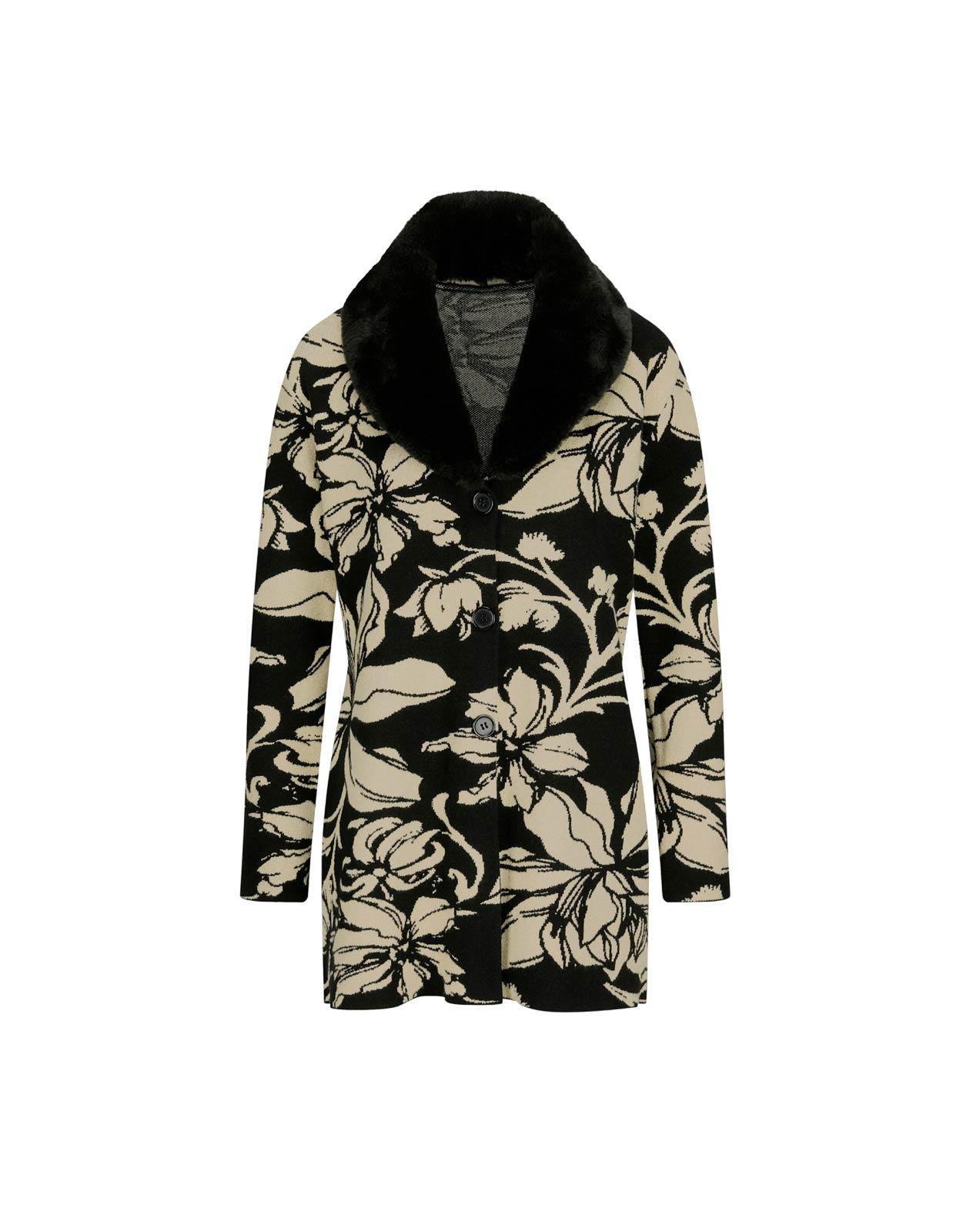 Polopullover mit Häkelverzierungen schwarz-ecru