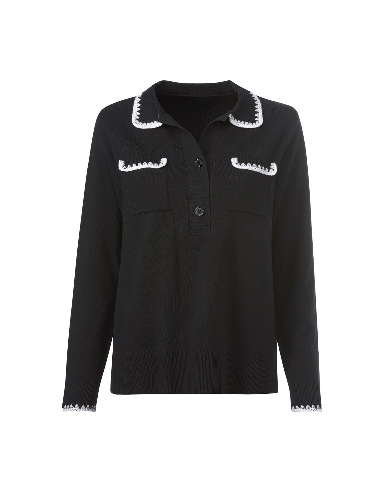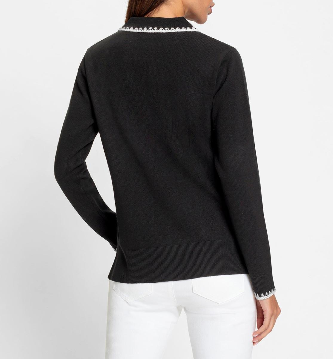 Druckshirt mit Spitzenbesatz schwarz-ecru