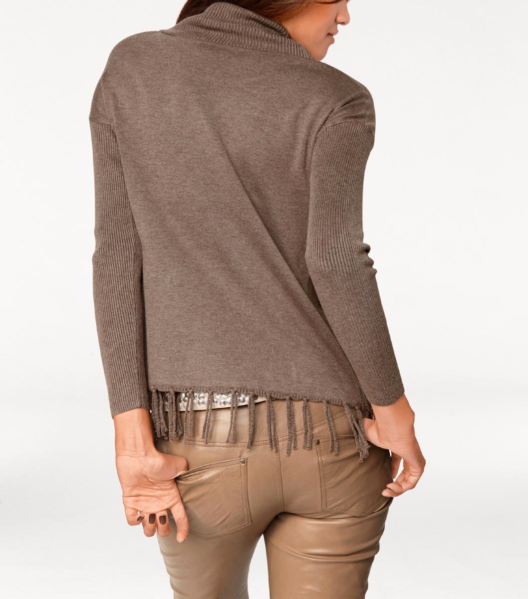 Strickjacke mit Spitzenbordüre taupe-meliert