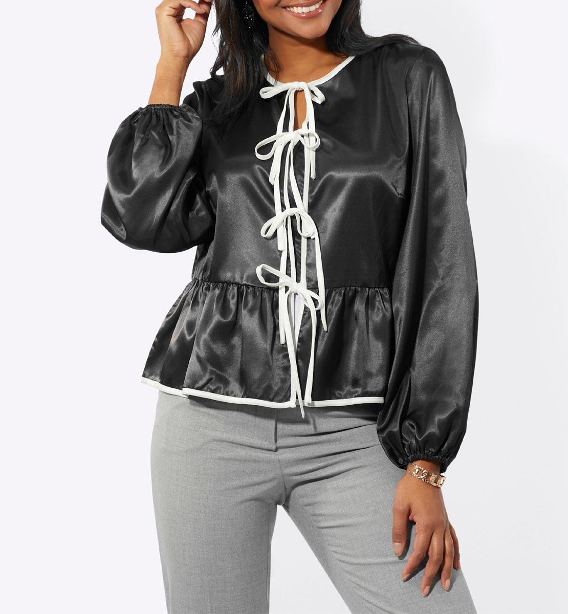 2-in-1-Pullover mit Blusen-Einsatz schwarz-ecru