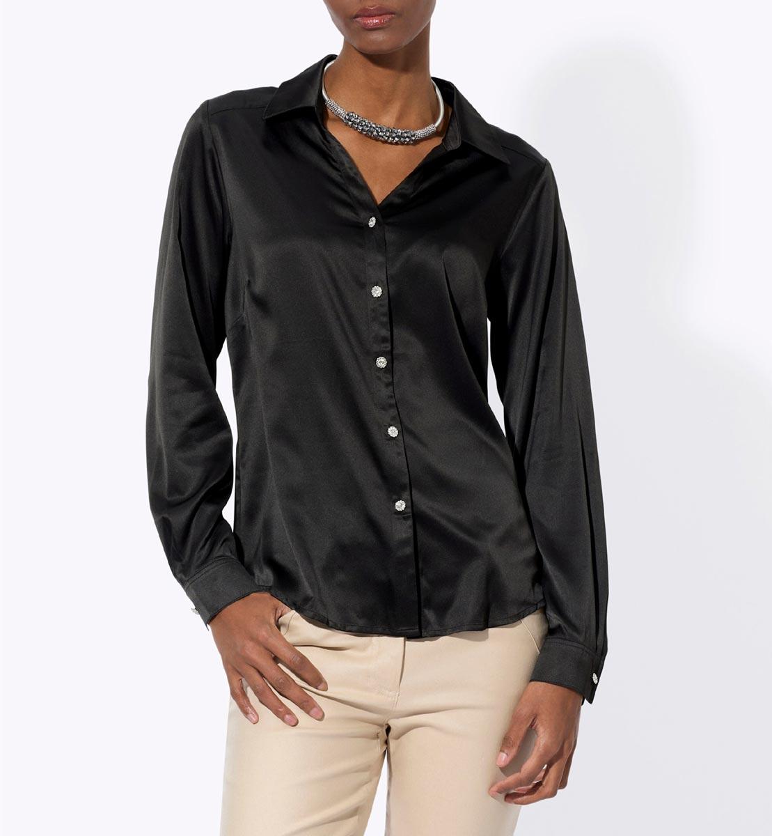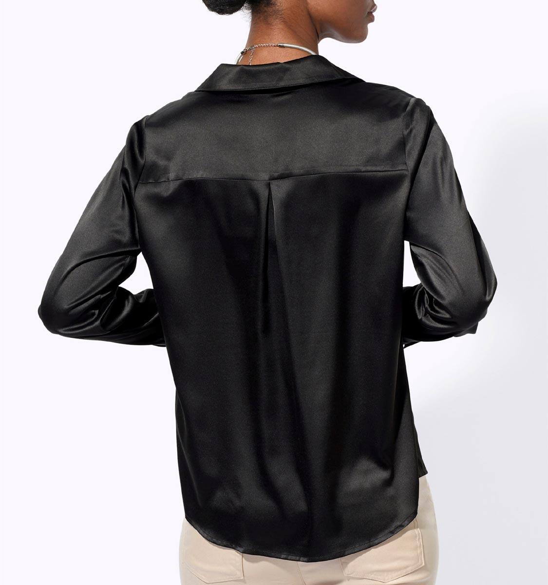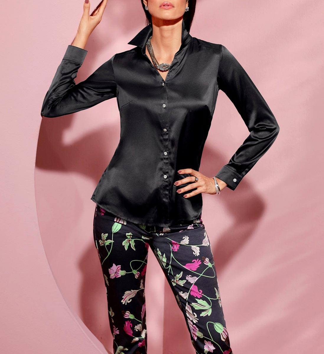 We love the look! Das Besondere an dieser Jersey-Bluse mit Hemdkragen ist der feine Mäusezähnchen-Abschluss, der den V-Ausschnitt ...