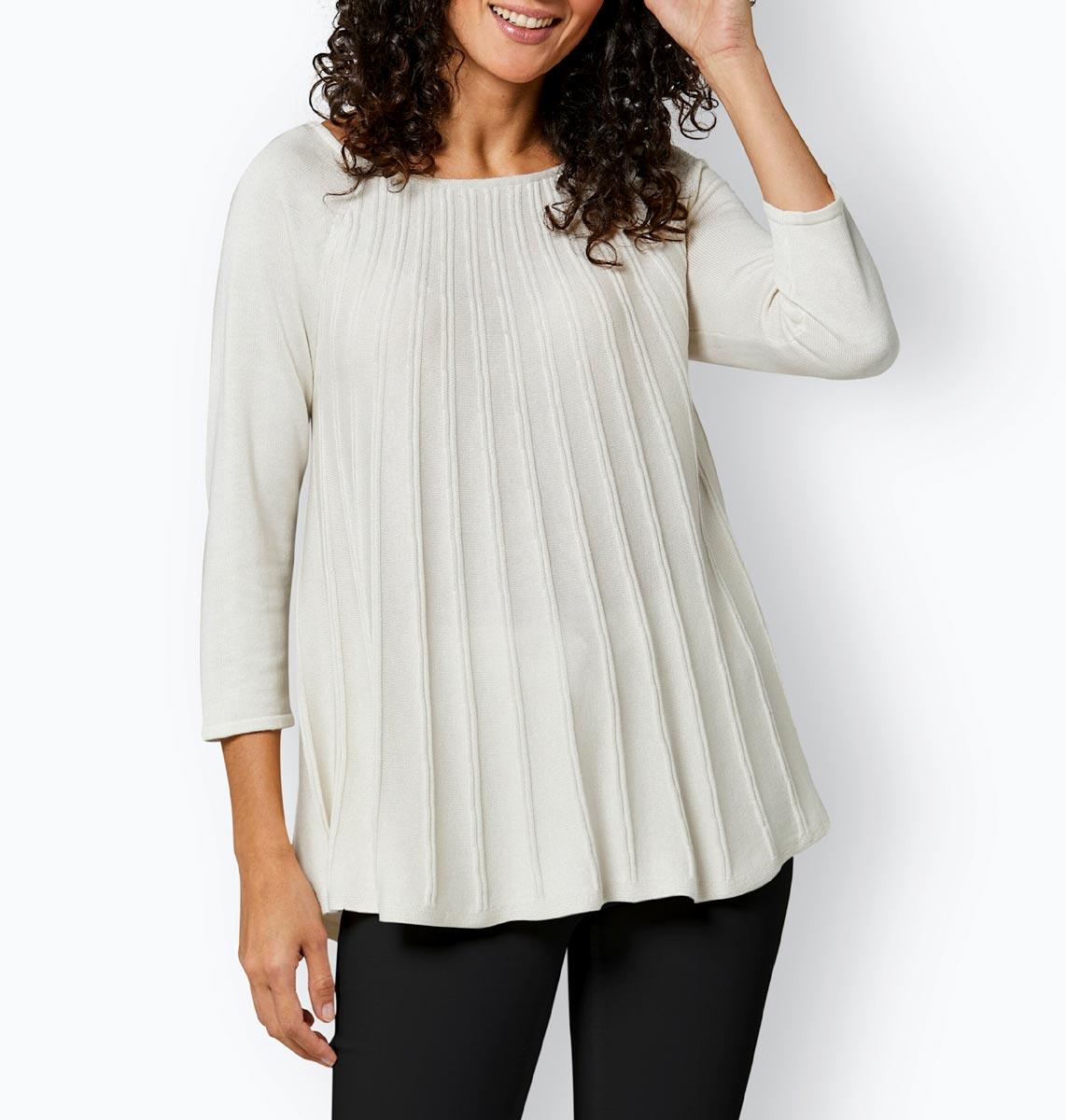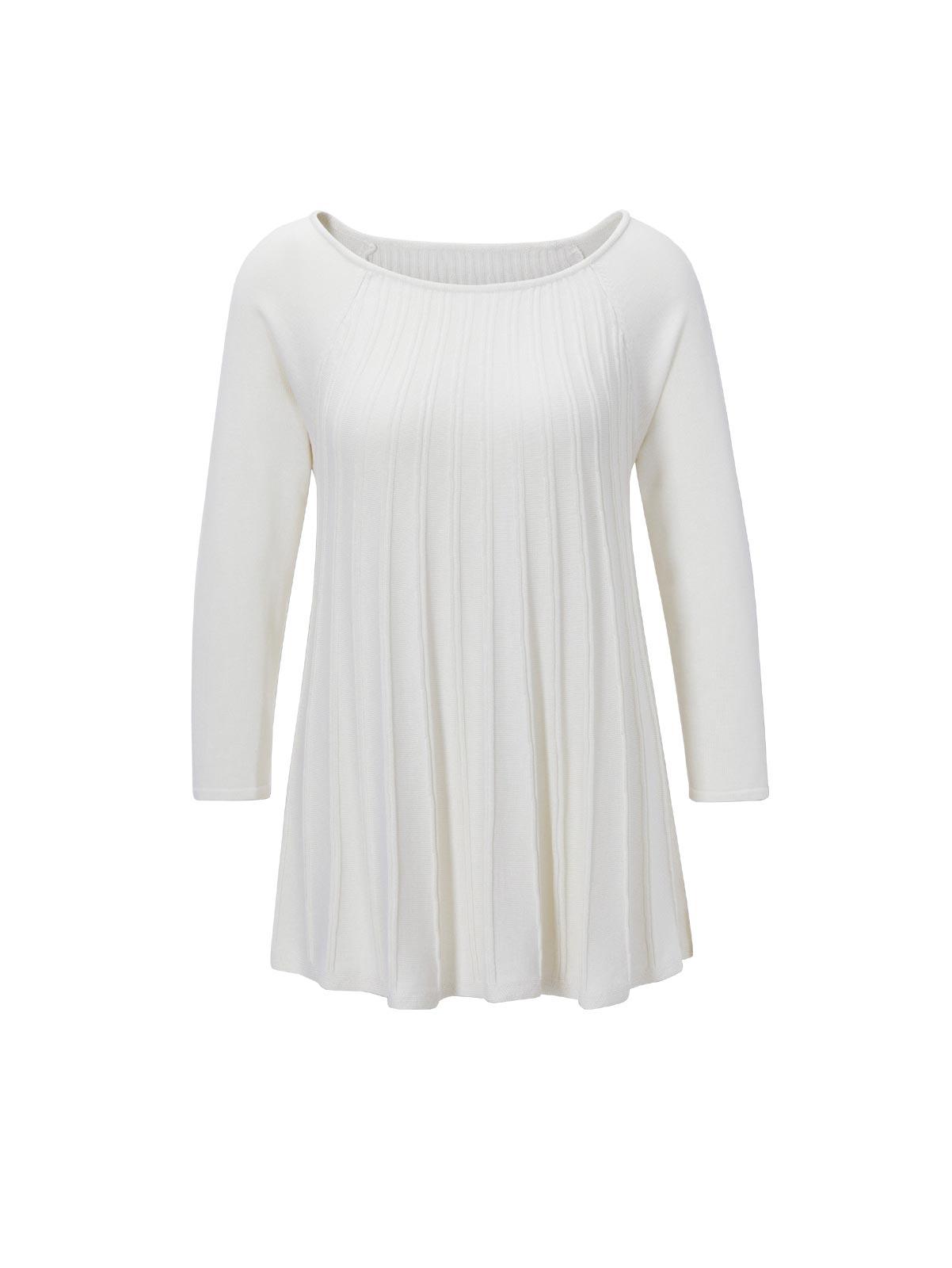 Bei dieser raffinierten Ausschnittlösung können Sie auf eine Halskette glatt verzichten! Modisch inszeniertes Shirt von Creation L ...