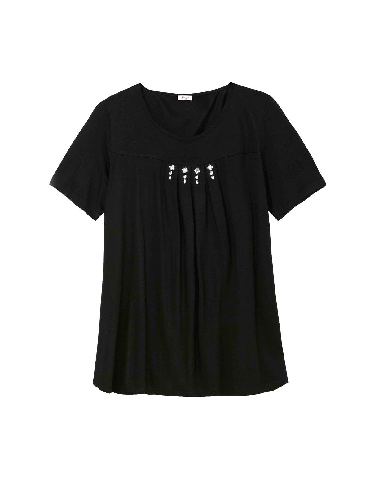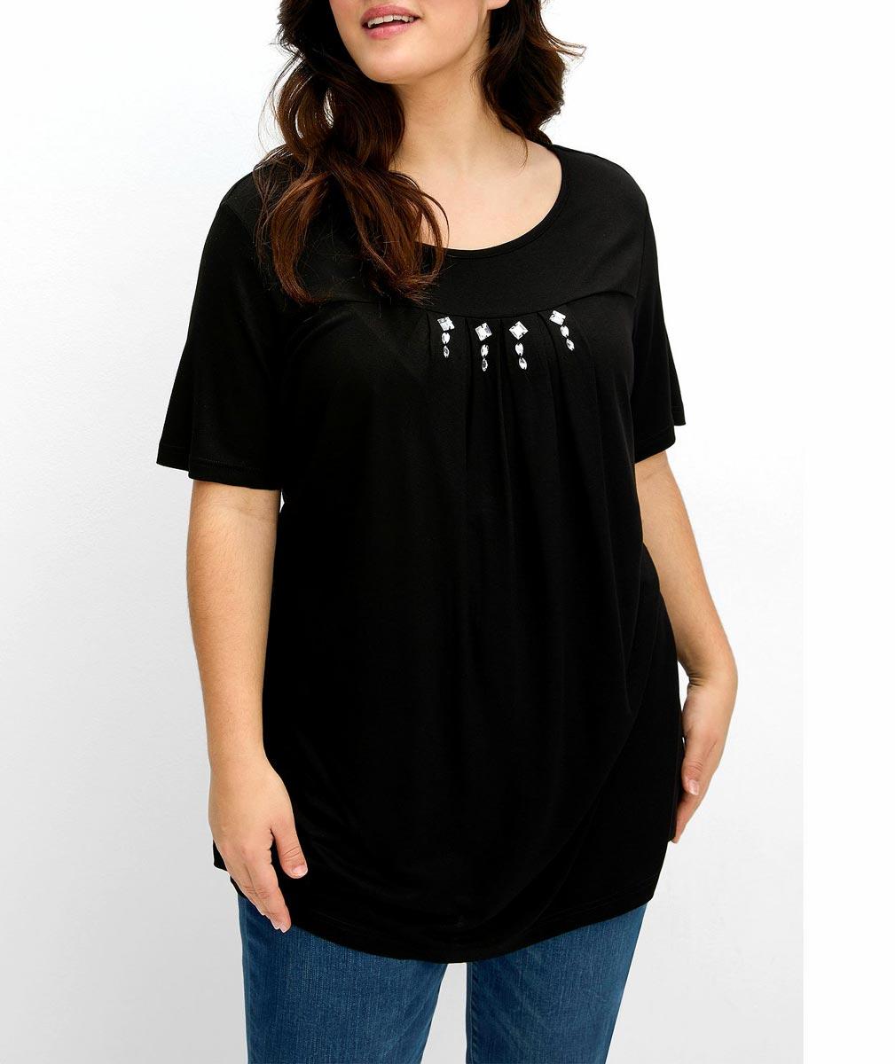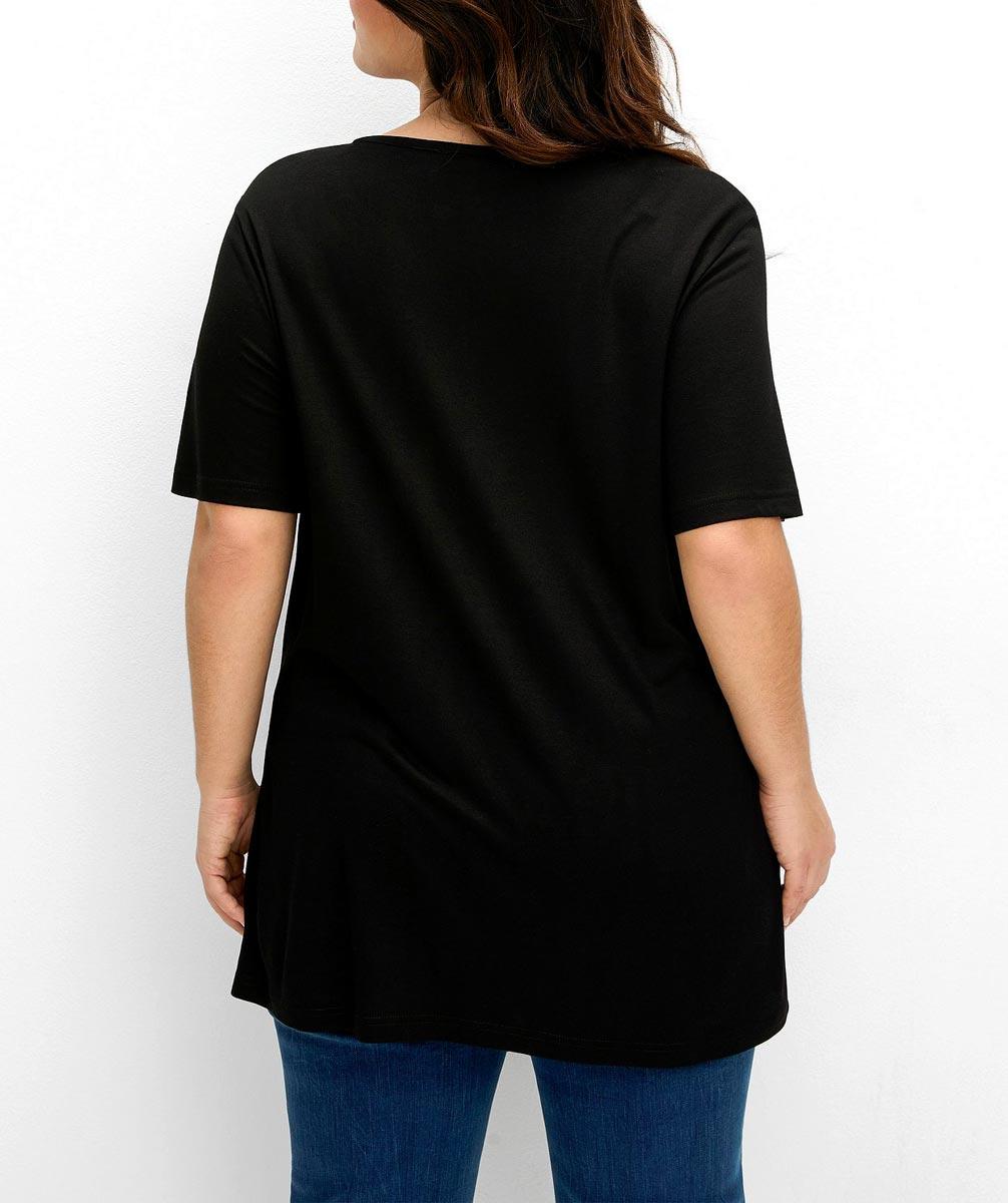 Bei dieser raffinierten Ausschnittlösung können Sie auf eine Halskette glatt verzichten! Modisch inszeniertes Shirt von Creation L ...