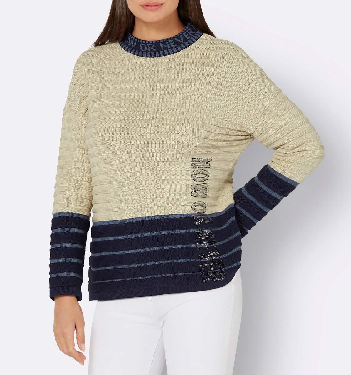 We love the look! Stilvoll und trendy zugleich. Bei dieser sheego Strickjacke fallen die sheego-Buchstaben im Jacquardstrick sofort ...